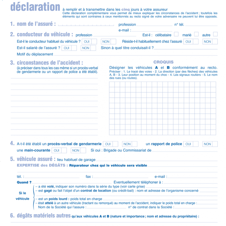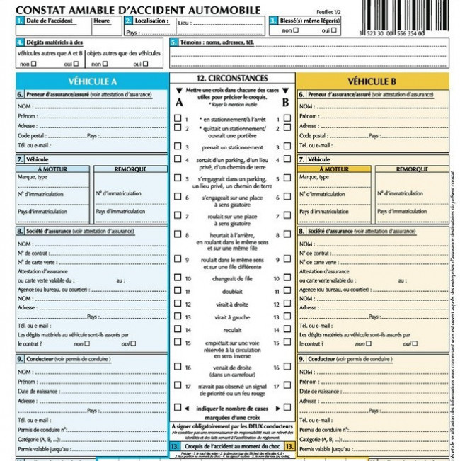 Si vous n'avez plus de constat amiable au format papier dans votre voiture, vous pouvez en télécharger un en pdf en ligne sur le site internet de votre compagnie d'assurance (AXA, L'Olivier Assurance, MACIF, GMF, etc.)