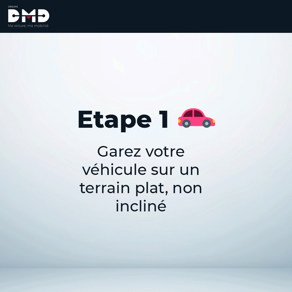 Etape 1 : Garez votre véhicule sur un terrain plat, non incliné afin de ne pas fausser le résultat et laissez refroidir le véhicule pour éviter toutes brûlures.