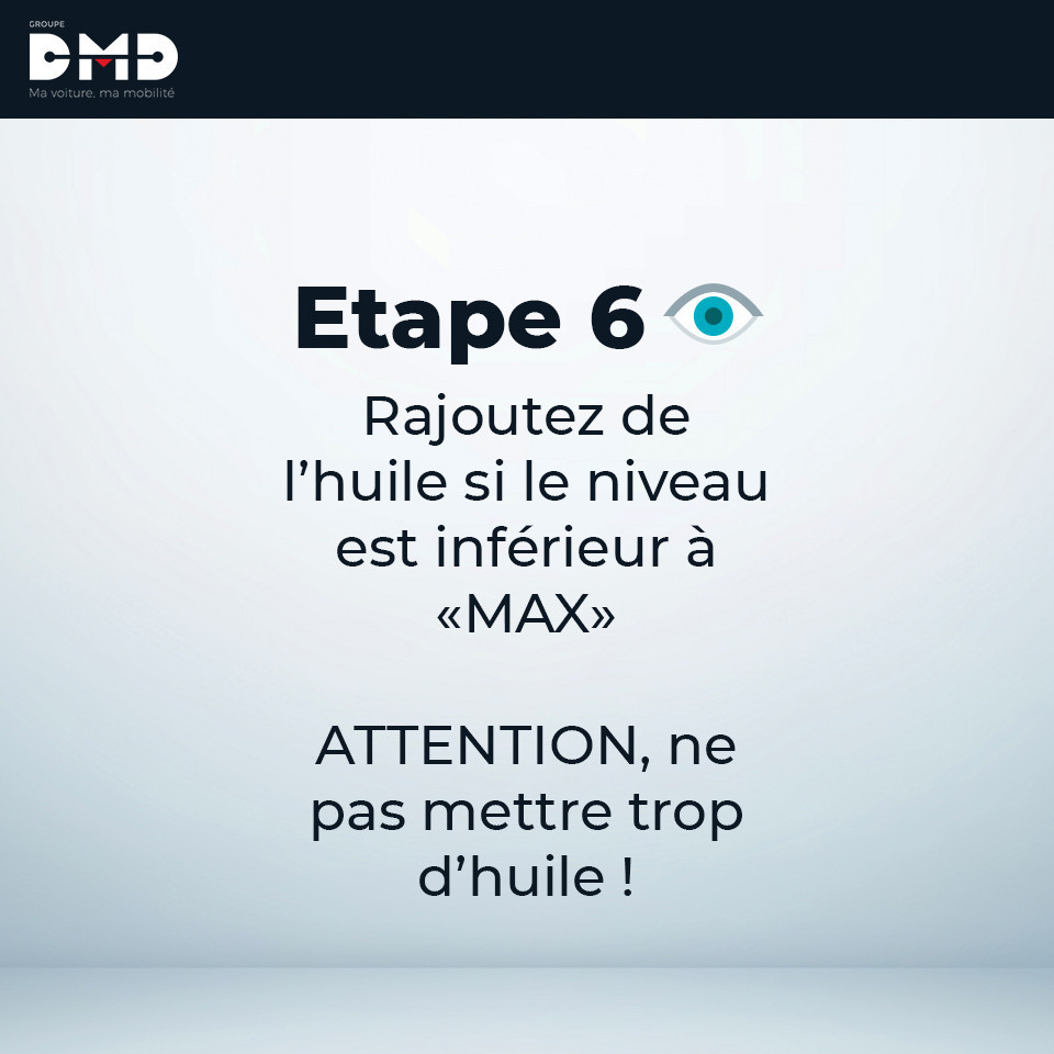 Etape 6 : Rajoutez de l'huile si le niveau est inférieur à MAX. Attention, il ne faut pas mettre trop d'huile.