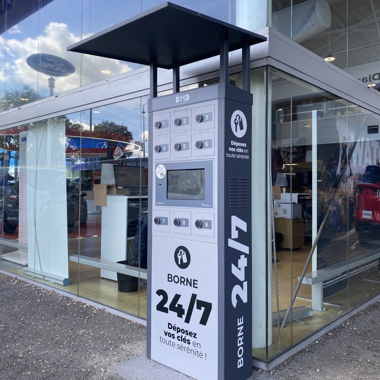 ✅ Rendez-vous à la borne 24/7 présente sur le parking de votre concession Ford St-Herblain (Nantes – Loire-Atlantique – 44). Entrez votre code pour déposer ou récupérer vos clés et votre carte grise.