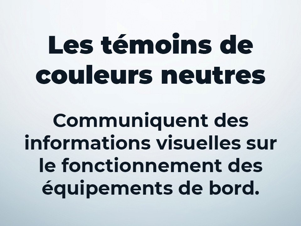 • Témoins lumineux de couleurs neutres :  Communiquent des informations visuelles sur le fonctionnement des équipements de bord.