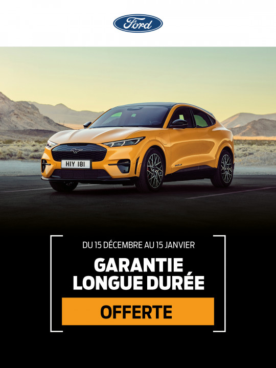 Venez essayer le SUV 100% électrique de Ford : la Mustang MACH-E. Avec son design élégamment sculpté, ses technologies de pointe et son autonomie électrique, vous ne verrez plus vos trajets de la même manière. En plus, spécialement pour vous, jusqu'au 15 janvier 2022, nous vous offrons la garantie longue durée* !