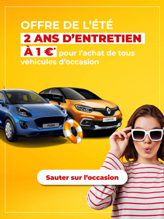 (*) Offre réservée aux particuliers et valable du 09/07/2024 au 31/08/2024, dans les concessions Ford, MG et Suzuki du groupe DMD participantes. Offre non cumulable avec d'autres offres promotionnelles en cours. Offre valable sous condition de l'achat d'un véhicule d'occasion en stock sur la période mentionnée ci-dessous en Location avec Option d'Achat (LOA). Dans la limite des stocks disponibles. UN CRÉDIT VOUS ENGAGE ET DOIT ÊTRE REMBOURSÉ. VÉRIFIEZ VOS CAPACITÉS DE REMBOURSEMENT AVANT DE VOUS ENGAGER. Exemple de financement en Location avec Option d'Achat (LOA) sur une durée de 36 mois et 45 000 km pour un Ford PUMA Titanium 6CV, 24 175 km, immatriculé le 25/05/2021 d'occasion vendu au prix de 18 990€ TTC avec un apport de 5 000€ TTC suivi de 35 loyers de 314,01€ TTC/mois. Option d'achat TTC : 8 369€. Montant total dû hors assurances et prestations facultatives (en cas d'acquisition) : 22 632.33€. Montant total dû avec assurances et prestations facultatives (en cas d'acquisition) : 24 359.97 €. Assurance des personnes préposée : 20.89€/mois soit un montant total d'assurance des personnes de 752.04€ sur la durée totale du financement. Assurance emprunteur(1), remboursement du solde et d'une partie de l'apport en cas de sinistre(2) et extension de garantie inclus(3). Signalisation conforme au décret 78-993 du 4 octobre 1978. Aucun versement, de quelque nature que ce soit, ne peut être exigé d'un particulier, avant l'obtention d'un ou plusieurs prêts d'argent. CGL, Compagnie Générale de Location d'Equipements, Groupe Société Générale - SA au capital de 58 606 156 euros - 69 avenue de Flandre 59700 Marcq-en-Baroeul - SIREN 303 236 186 RCS Lille Métropole. CGI FINANCE est une marque de la Société Générale mise à disposition de CGL. Entretien 3 ans inclus dont 2 ans réduit à une valeur de 1€, puis 1 an à une valeur de 360€TTC. Entretien comprenant l’entretien suivant les préconisations du constructeur pendant toute la durée du contrat, le remplacement du filtre à air, filtre à pollen, combustible, huile et bougies d’allumage, la mise à niveau et appoints, ampoules et pression des pneus, (hors ampoule H15, XENON et leds), le contrôle et le nettoyage du système de climatisation, le remplacement des balais d’essuie glaces selon usure (dans la limite d’un jeu de balai par an), le remplacement des plaquettes à partir de 85 % d’usure (dans la limite d’un jeu de plaquettes par essieu tous les 40 000 kilomètres), le remplacement des disques frein selon usure, si la cote mesurée est inférieure ou égale à la cote minimale préconisée par le constructeur (dans la limite d’une paire de disques de freins par essieu tous les 80 000 KM), le remplacement de la pile de clés, le contrôle technique obligatoire, le prêt d’un véhicule de courtoisie, sous réserve de disponibilité. (1) L'assurance des personnes : en cas de coup dur, vous ne vous souciez plus de votre financement : les échéances sont prises en charge ou le financement est soldé. En plus, vous bénéficiez d'une protection de votre permis sous forme d'un stage de sensibilisation à la sécurité routière en cas de perte de points. Tarification pour un client agé de 18 à 64 ans inclus en bonne santé et ne nécessitant pas de surprime. (2) L'assurance Protection Pécuniaire : votre véhicule est volé ou détruit, votre financement est soldé et votre apport préservé en crédit (dans la limite de 25%) ou votre premier loyer remboursé (3) Les Garanties Longue Durée : votre véhicule est garanti pendant toute la durée du financement (7 ans maxi) et sans limitation de kilométrage ni vétusté. Contrats d’assurance collective « Assurances des Personnes » et « Assistance Conducteur Protection Permis » souscrits par CGL auprès respectivement de SOGECAP et de SOGESSUR, entreprises régies par le Code des assurances, et d'EUROP ASSISTANCE. Contrats présentés par CGL, courtier d’assurance, n°ORIAS 07027148 (www.orias.fr) via ses mandataires. CGI FINANCE est une marque de la Société Générale mise à disposition de CGL. Contrat d’assurance collective de dommages « Assurance Protection Pécuniaire » souscrit par CGL auprès de SOGESSUR, entreprise régie par le Code des assurances. Contrat présenté par CGL, courtier d’assurance, n° ORIAS 07027148 (www.orias.fr) via ses mandataires. CGI FINANCE est une marque de la Société Générale mise à disposition de CGL. Contrat d’assurance collective de dommages « Garantie Longue Durée » souscrit par CGL auprès de SOGESSUR, entreprise régie par le Code des assurances (prestations mises en oeuvre par OPTEVEN ASSURANCES). Contrat d’assistance « CGI Finance Assistance » souscrit par CGL auprès d’OPTEVEN ASSURANCES. Contrats présentés par CGL, courtier d’assurance, n° ORIAS 07027148 (www.orias.fr) via ses mandataires. CGI FINANCE est une marque de la Société Générale mise à disposition de CGL. Conformément à la loi "informatique et libertés" du 6 janvier 1978 modifiée (art.38 et s,), vous disposez d'un droit d'accès, de modification, de rectification et de suppression des données vous concernant, que vous pouvez exercer en contactant le DPO du Groupe DMD : dpo@groupe-dmd.fr. Vous pouvez consulter notre politique de protection de données relative à la collecte et aux traitements des données sur https://groupe-dmd.fr/politique-de-confidentialite. Groupe DMD - SAS au capital de 2 404 976,00 € - RCS Nantes n° 423 295 880 - 365, route de Vannes - 44800 Saint-Herblain, France. N° de TVA intracommunautaire : F27423295880. |