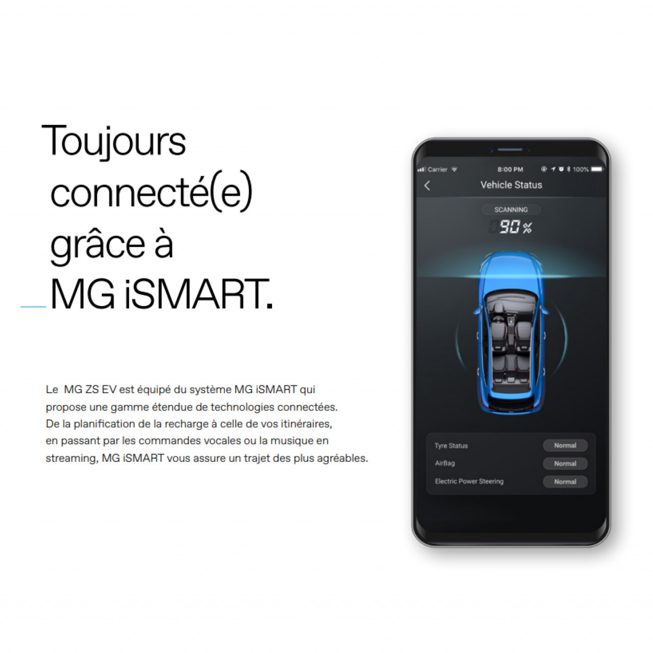 Grâce à l'application connectée MG, vous pouvez vérifier l'état de votre véhicule en temps réel, le localiser, et contrôle certaines fonctions à distance. Le système MG iSMART, compatible Apple CarPlay et Android Auto, intègre également la mise à jour automatique à distance des principaux logiciels d'info divertissement (FOTA).