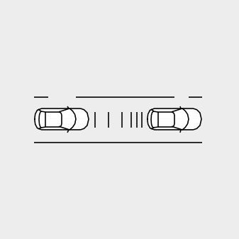 Lorsque la MG ZS EV détecte un véhicule plus lent dans la zone de détection à l'avant, elle décélère ou active le système de freinage. Si l'autre véhicule accélère ou change de voie, le système ACC ré-accélére automatiquement jusqu'à atteindre la vitesse programmée.